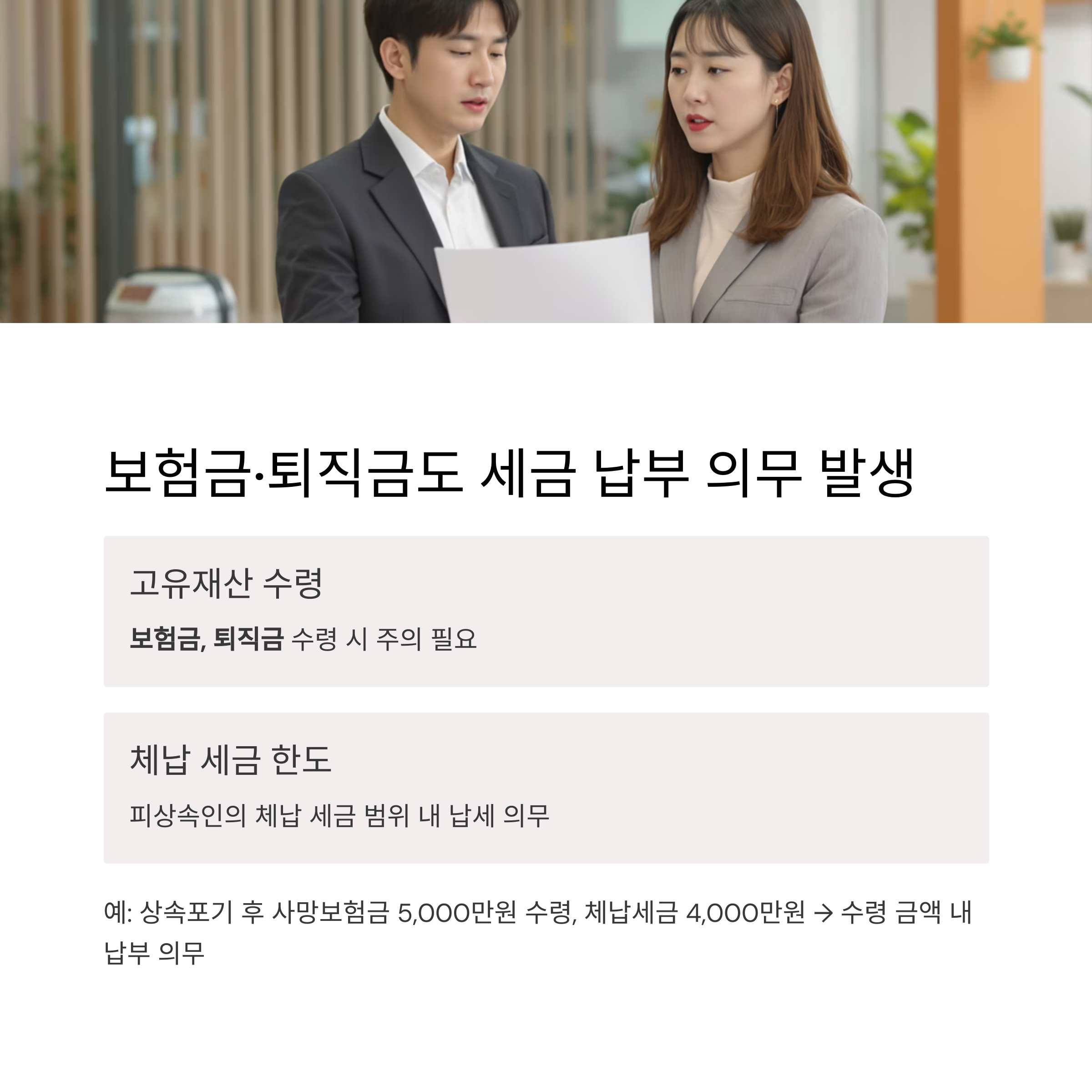 보험금이나 퇴직금 수령 시 체납 국세 납부 의무 발생