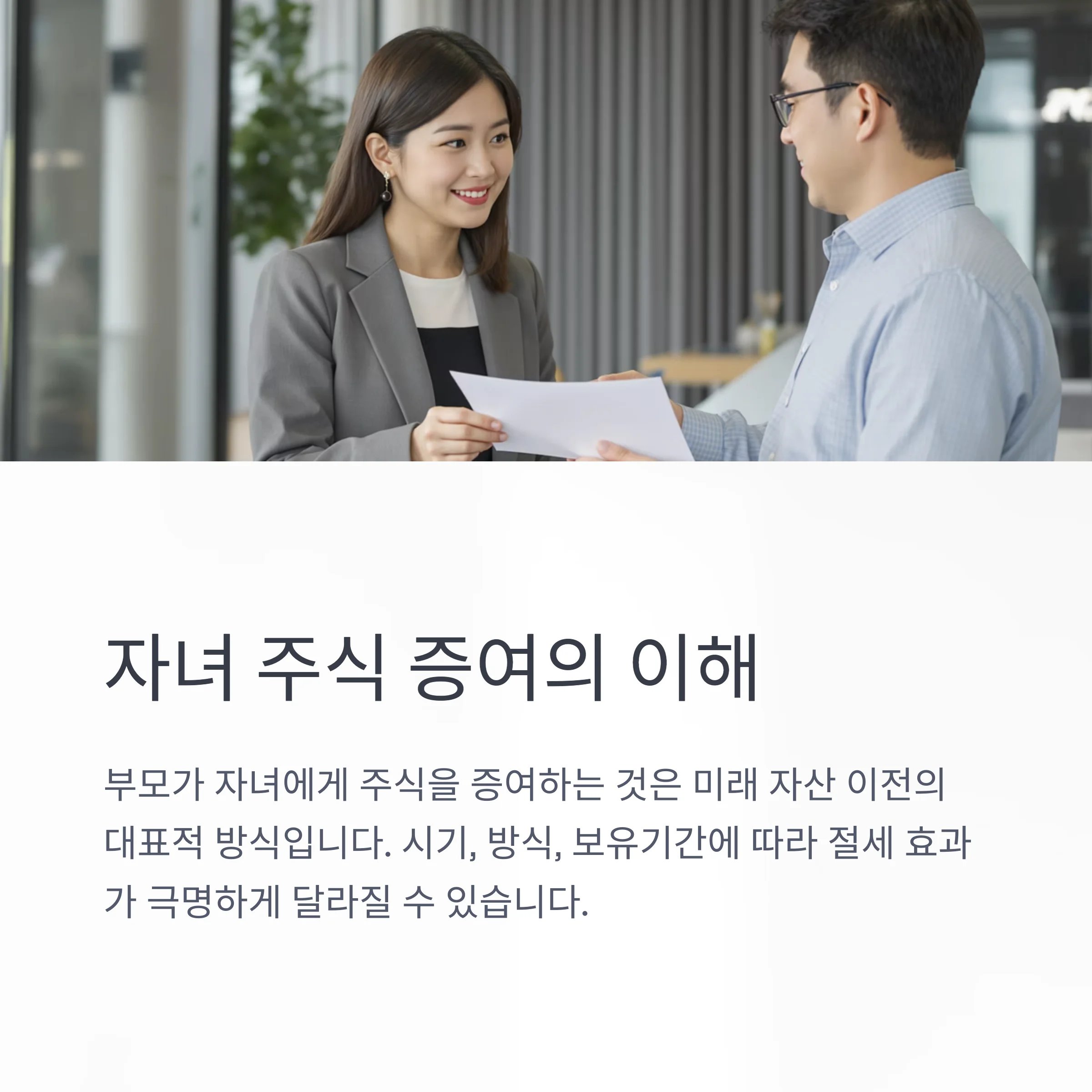 부모가 자녀에게 주식을 증여하는 것은 미래 자산 이전의 대표적 방식입니다.