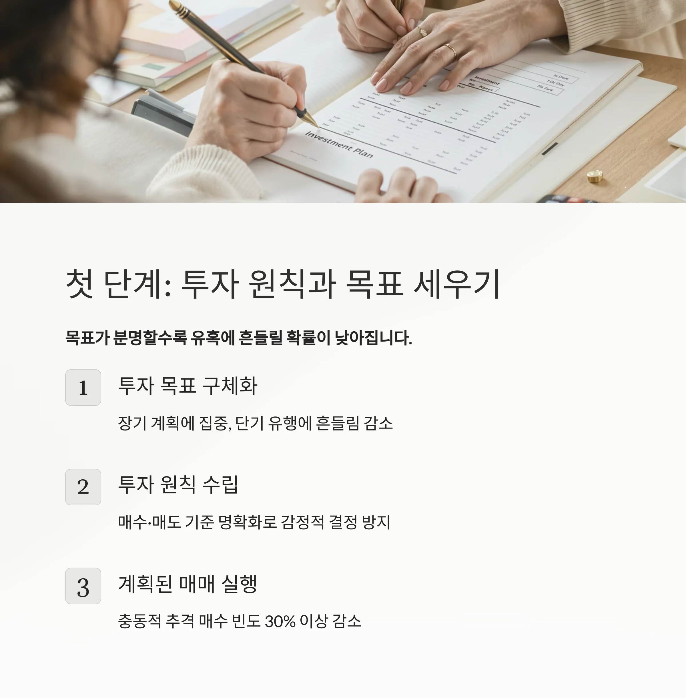 | 투자 목표 구체화 | 장기 계획에 집중, 단기 유행에 흔들림 감소 |