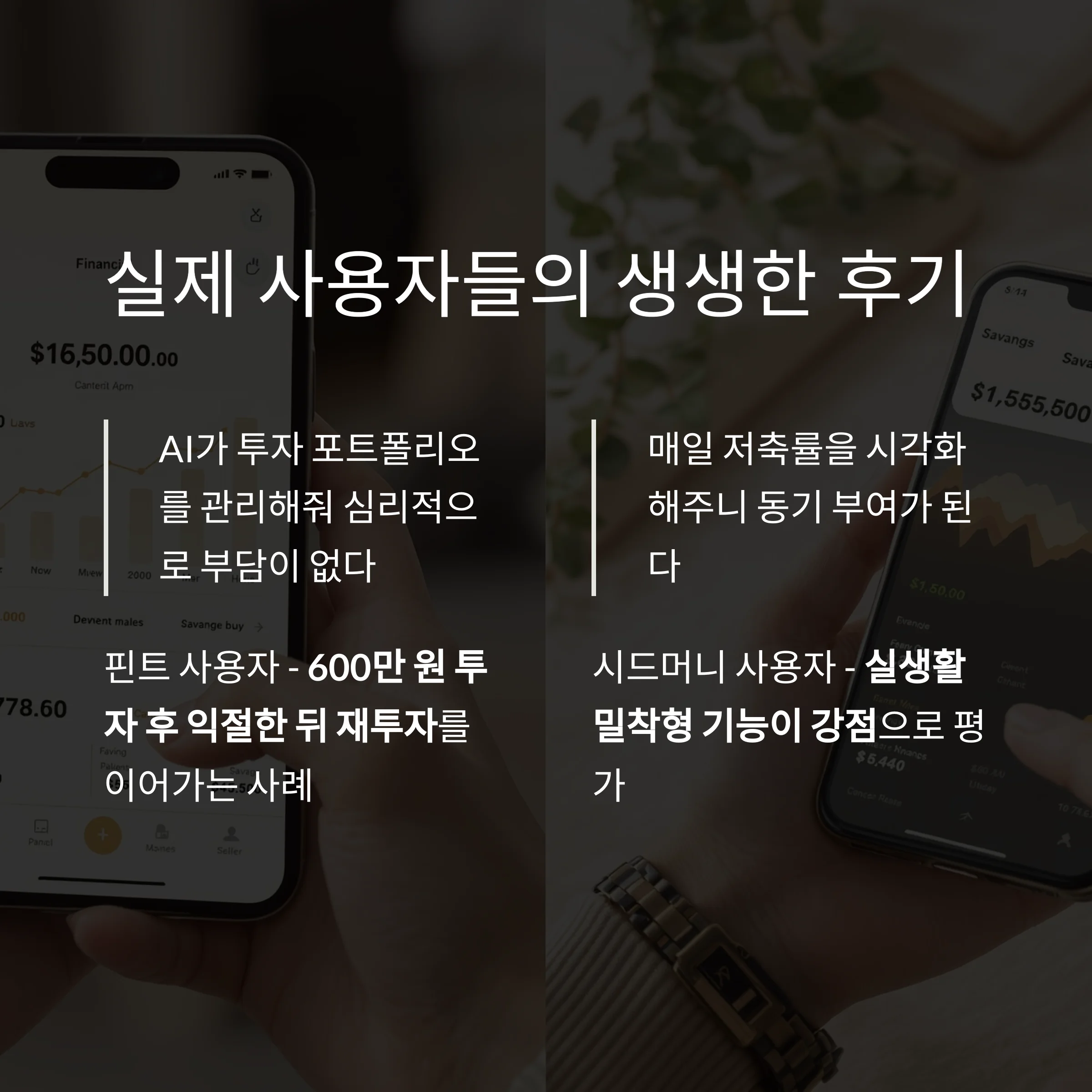 "AI가 투자 포트폴리오를 관리해줘 심리적으로 부담이 없다"는 핀트 사용자의 평가는