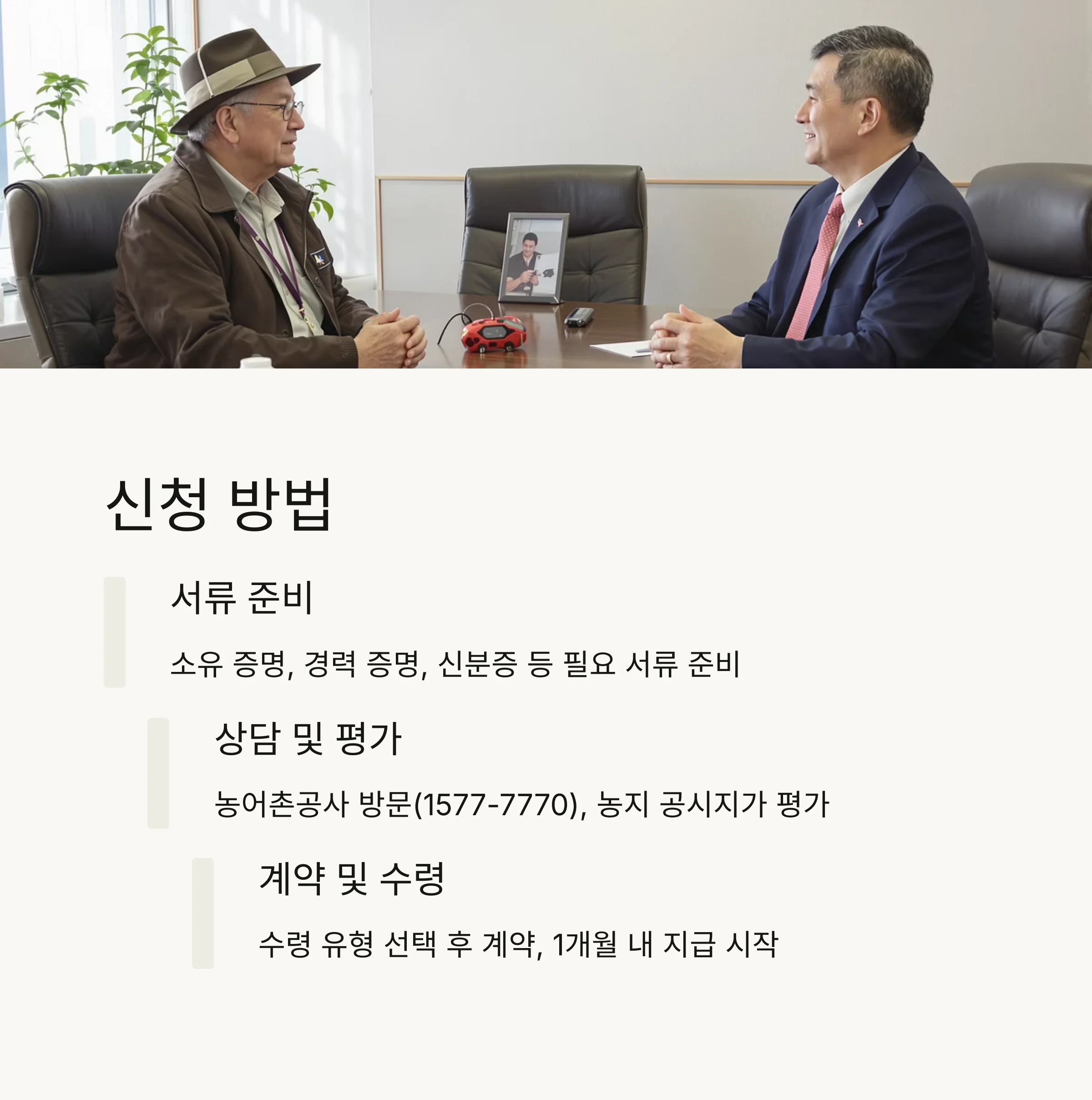 - 임대형 우대: 농지은행 임차 시 월 수령액 5% 추가